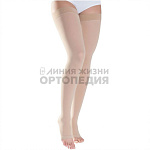 <p version="2">Медицинские компрессионные чулки до паха с компрессией 25 мм рт. ст. и открытым мыском, изготовлены из современных синтетических волокон с добавлением полиамида и эластана, что обеспечивает оптимальную эластичность, прочность и вентиляцию кожи. Рекомендуются для лечения и профилактики хронической венозной недостаточности, варикозного расширения вен и отеков нижних конечностей. Зона применения — от стопы до паха. Конструкция с анатомической формой предусматривает градуированное давление, максимальное в области лодыжки для эффективного венозного оттока и снижение риска тромбообразования. Открытый мыс облегчает контроль состояния стопы. Необходим врачебный контроль при длительном использовании.</p>