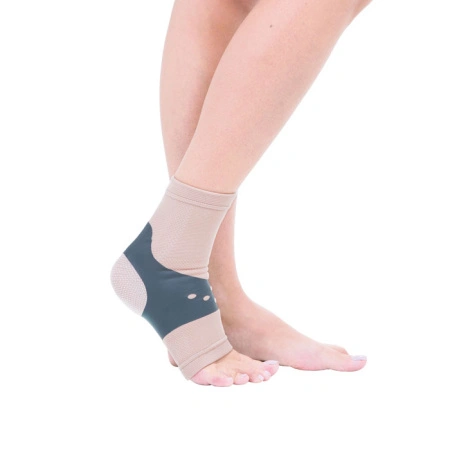 Специализированный фиксирующий бандаж с размерной линейкой для оптимального выбора. Изготовлен из качественных эластичных материалов с усиленными зонами фиксации, обеспечивает стабильность голеностопного сустава, профилактику повреждений и помощь при восстановлении повреждений.