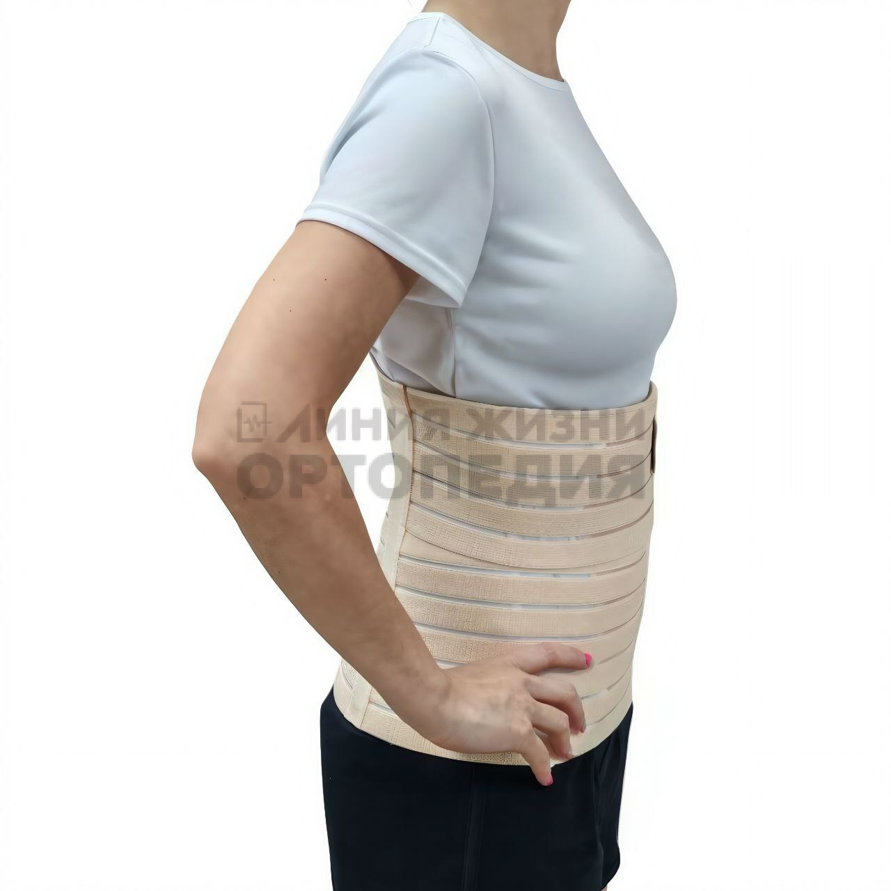 <p version="2">Изготовлен из воздухопроницаемого, эластичного медицинского материала с хлопковой подкладкой, обеспечивает надежную фиксацию и компрессию после операций на брюшной стенке и других отделах. Назначение — поддержка мышц и мягких тканей, уменьшение отека, профилактика послеоперационных грыж. Ширина 25 см обеспечивает эффективную охват и комфорт при длительном применении.</p>
