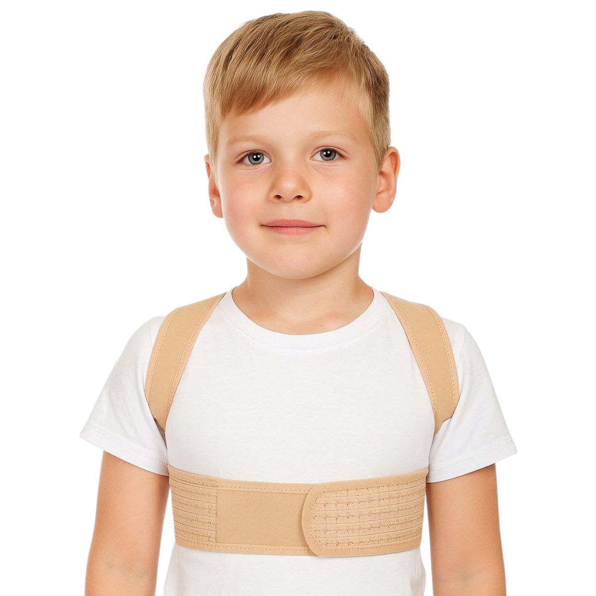 Детский ортопедический корректор из гипоаллергенного и воздухопроницаемого материала с полиуретановыми ребрами, хлопчатобумажной подкладкой. Назначение: коррекция осанки и разведение плеч, формирование дисциплины мышц спины, комфортная фиксация грудного отдела позвоночника. Показания: кифоз, сколиоз I-II ст., коррекция болевого синдрома при дегенеративных заболеваниях, профилактика последствий неправильной осанки. Конструкция обеспечивает анатомическую посадку, оптимальную компрессию, не заметен под одеждой