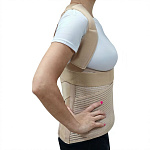 Корректор осанки Т.50.20 изготовлен из гипоаллергенного хлопоксодержащего материала с высокой воздухопроницаемостью, что предотвращает раздражение кожи и обеспечивает комфорт при длительном ношении. Изделие оснащено двумя длинными и двумя короткими металлическими моделируемыми ребрами жесткости, а также мягкой поясничной подушкой для дополнительного удобства. Область применения — грудопоясничный отдел позвоночника. Основное назначение – поэтапная коррекция и поддержка правильной осанки, разгрузка позвоночника, нормализация мышечного тонуса и коррекция костно-связочного аппарата. Медицинские показания: нарушения осанки, сутулость, кифотическая и сколиотическая деформация I-II степени, реабилитация после травм или операций, остеохондропатии. Особенности конструкции — комплекс динамических лямок и стяжек для индивидуальной регулировки, обеспечивающий оптимальное распределение давления и фиксацию