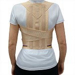 Изготовлен из воздухопроницаемого материала с содержанием хлопка (67%), оснащен двумя металлическими ребрами жесткости. Эластичные лямки предоставляют свободу движений и комфорт при ношении под одеждой. Применяется на грудном отделе позвоночника для формирования правильной осанки, реклинации, разгрузки отдела, нормализации тонуса мышц. Показания: сутулость, нарушение осанки, болезнь Шейермана-Мау, боли в грудном отделе, остеохондропатии