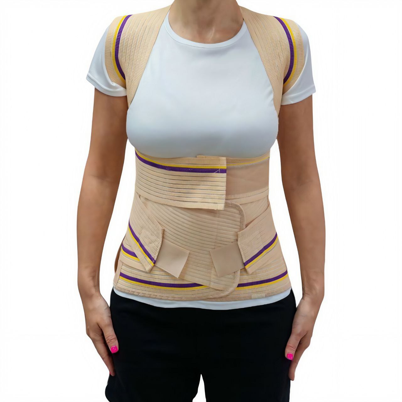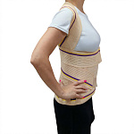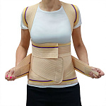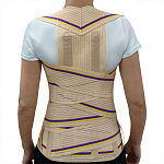 Корректор выполнен из дышащего хлопоксодержащего материала, оснащен прочной, широкой, износостойкой застёжкой «Велкро» и системой крепления для индивидуальной настройки степени фиксации, двумя длинными и короткими металлическими ребрами жесткости на грудной и поясничной области, двумя пластиковыми ребрами по передней поверхности изделия для поддержки абдоминальной зоны. Предназначен для корригирующей работы с грудопоясничным отделом позвоночника, нормализации мышечного тонуса, ускорения реабилитационных процессов, снятия воспаления и поддержки осанки
