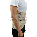 <p version="2">Изготовлен из мягкого и в то же время прочного комбинированного материала с высоким содержанием хлопка и эластичных волокон. Оснащен четырьмя ребрами жесткости по спинке, широкой поддерживающей панелью, системой эластичных ремней с застежками для точной индивидуальной фиксации. Применяется при выраженных болях в поясничном отделе, радикулите, миозите, грыжах дисков, мышечной слабости. Особенности: эргономичная анатомическая форма, многослойная фиксация, комфорт даже при продолжительном ношении.</p>
