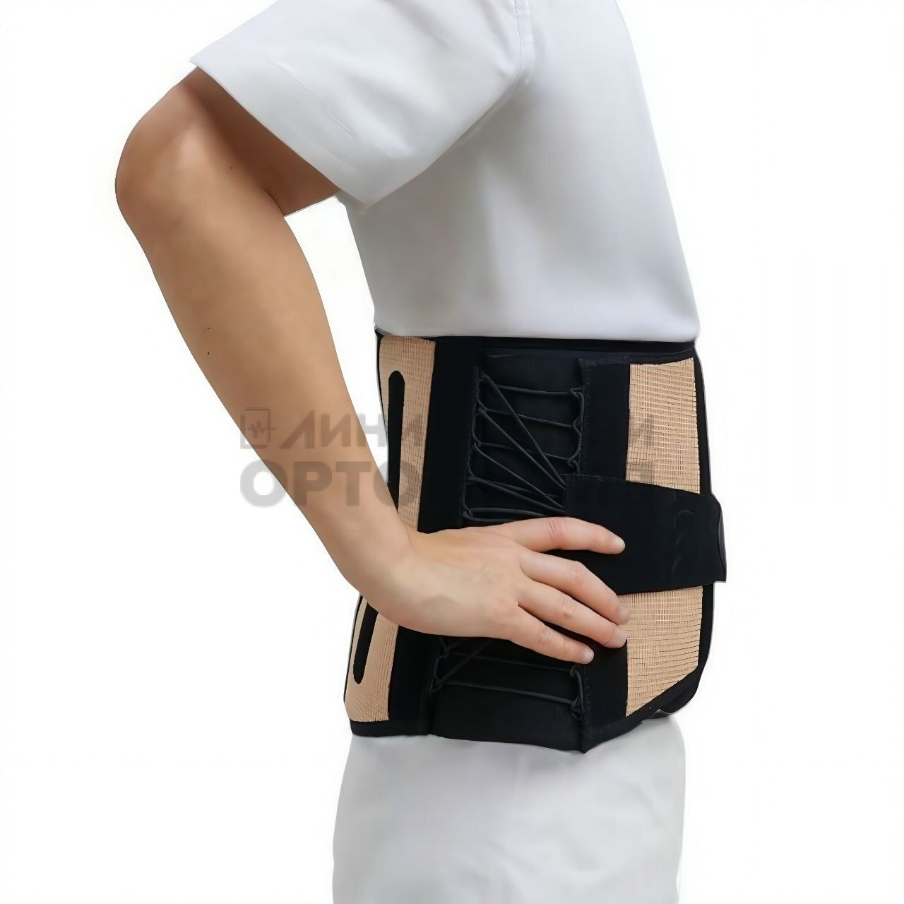 <p version="2">Высокоэргономичный поясничный корсет из усиленного воздухопроницаемого полотна, оснащенный четырьмя полужесткими или жесткими пластиковыми ребрами, полосами фиксации для анатомической поддержки позвоночника и брюшной стенки. Назначение — комплексная разгрузка и стабилизация при выраженных радикулитах, межпозвоночных грыжах, посттравматических состояниях. Показания: интенсивные физические нагрузки, профилактика повторных травм, период реабилитации. Особенности: расширенные боковые вставки, быстро регулируемая фиксация, усиленное воздействие.</p>