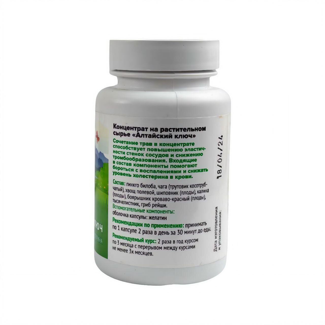 "Алтайский ключ" — биологически активный комплекс в капсулах, содержащий экстракты алтайских лекарственных трав. Каждая капсула весом 500 мг включает в себя концентраты зверобоя, шиповника, ромашки, крапивы и других компонентов. Предназначен для общеукрепляющего воздействия, повышения иммунитета, улучшения обмена веществ и поддержки работы органов ЖКТ. Медицинские показания включают стрессовые состояния, снижение иммунного ответа, нарушение пищеварения и общей тонус организма. Конструктивно — твердые желатиновые капсулы, удобные для приема. Противопоказания — индивидуальная аллергия и беременность.