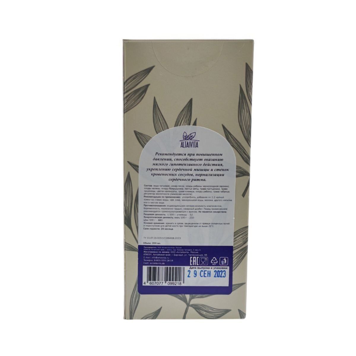 Бальзам безалкогольный объемом 200 мл, изготовленный на основе натуральных экстрактов и витаминного комплекса. Применяется для комплексной поддержки сердечно-сосудистой системы, нормализации артериального давления и улучшения общего тонуса организма. Медицинские показания включают гипертонию легкой и средней степени, утомляемость, нарушение сна и снижение устойчивости к стрессовым факторам. Конструктивно — жидкий препарат во флаконе с дозатором, предназначен для приема внутрь. Противопоказан при индивидуальной непереносимости.