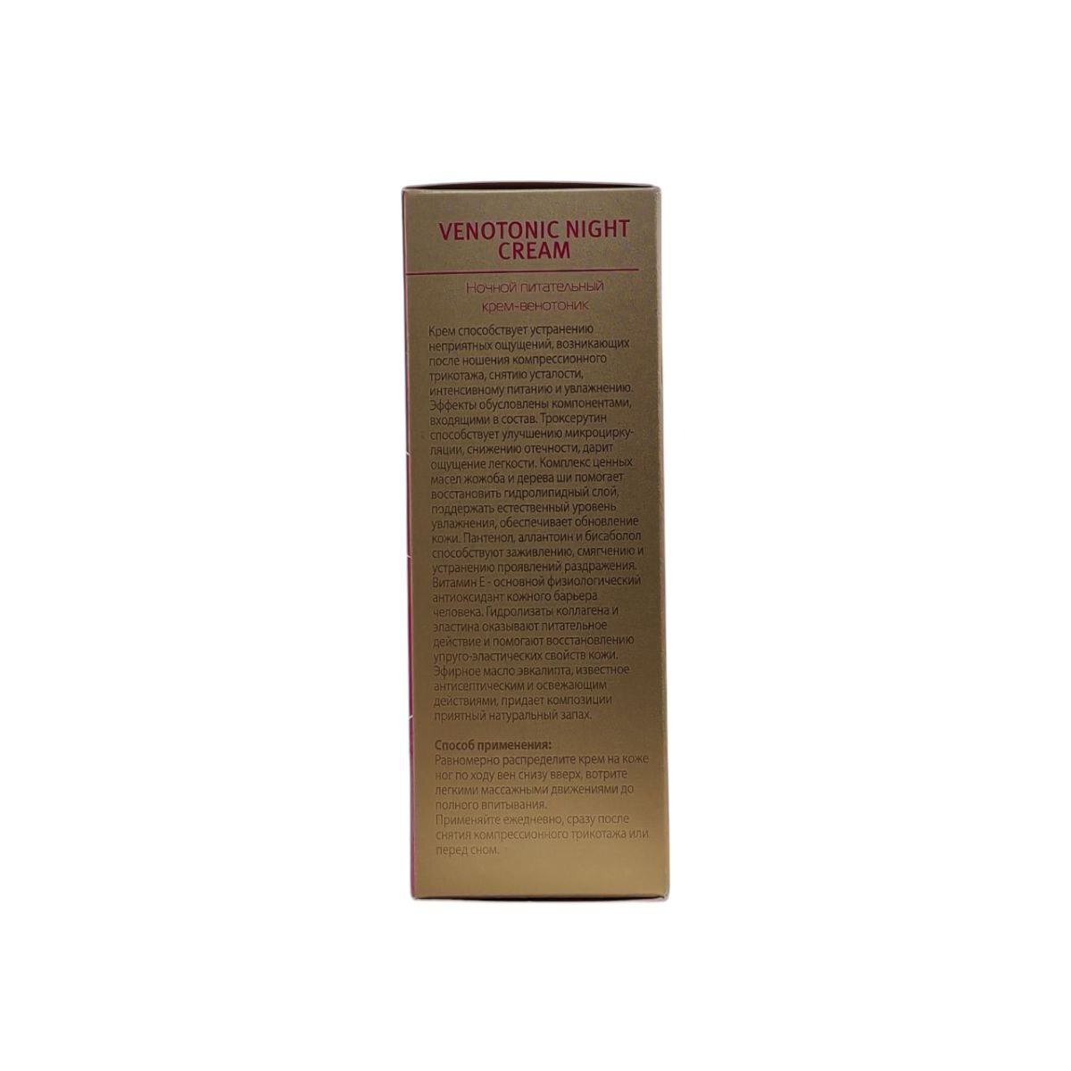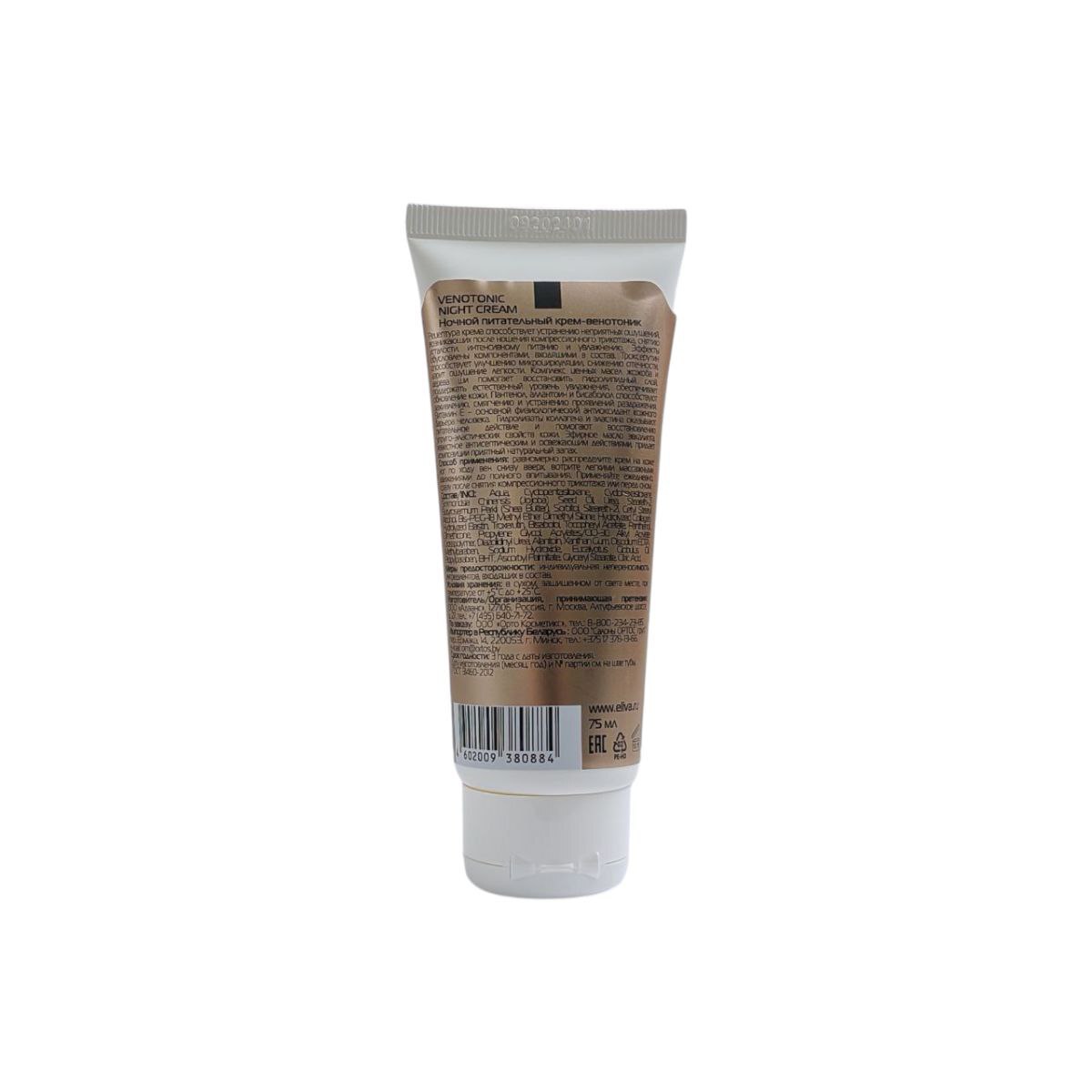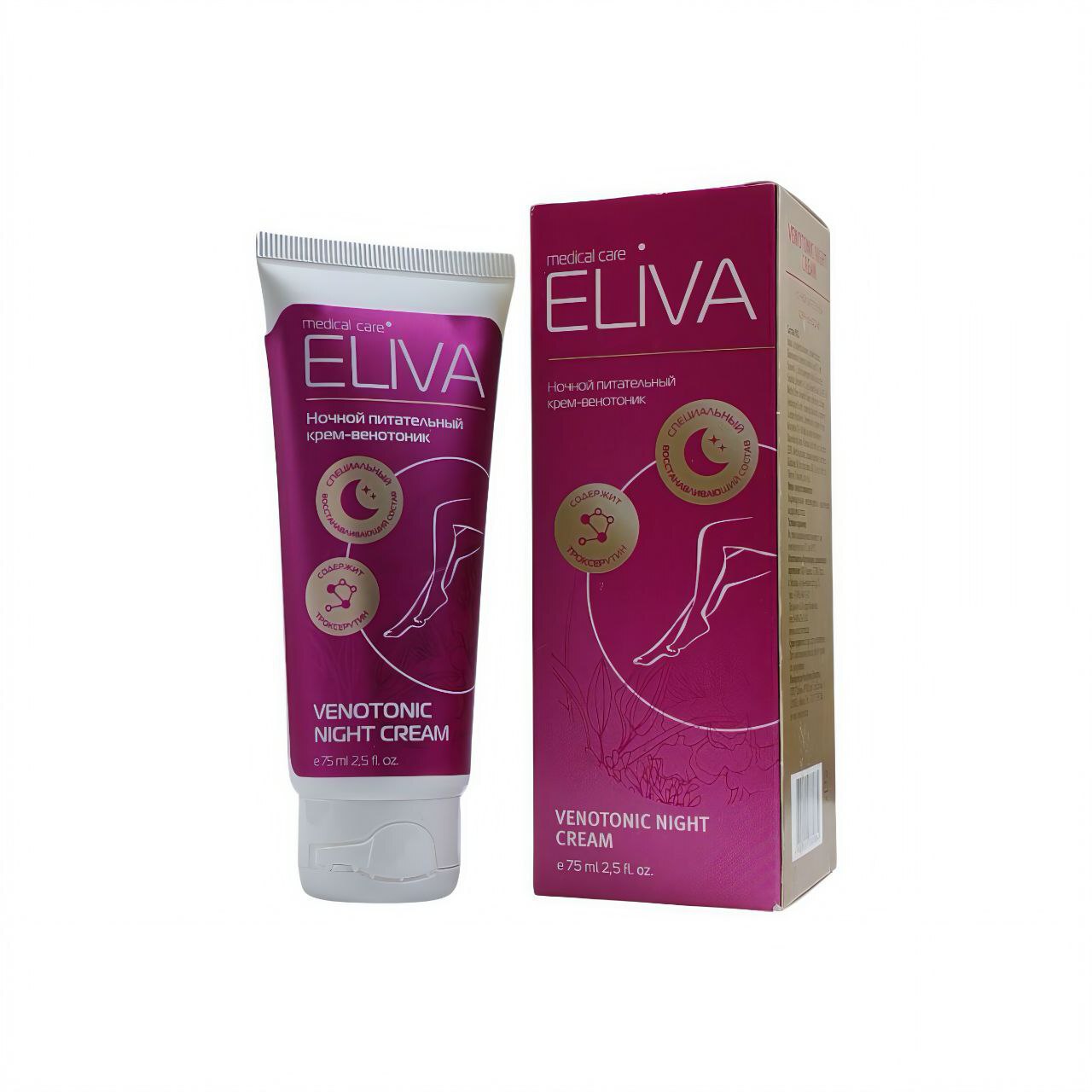 Ночной крем ELIVA с венотонизирующим действием содержит натуральные экстракты конского каштана, гинкго билоба и витамины, направлен на укрепление сосудистой стенки, улучшение микроциркуляции и уменьшение отечности ног в ночное время. Материал — кремообразная текстура в пластиковом тюбике 75 мл. Назначение — профилактика и поддержка при венозной недостаточности, варикозном расширении вен, хронической усталости ног. Область применения — кожа ног и стоп. Конструкция упаковки обеспечивает удобство дозирования.