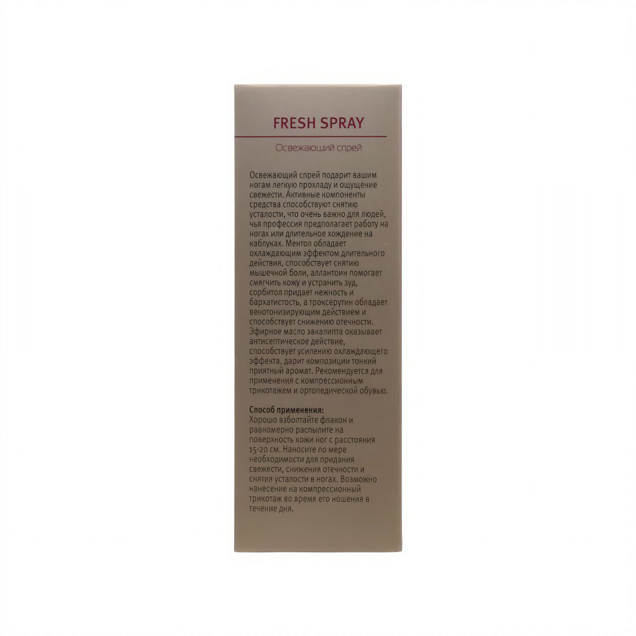 Освежающий спрей ELIVA на основе натуральных растительных экстрактов и ментола обеспечивает чувство прохлады и снятие усталости ног после длительной нагрузки. Спрей улучшает микроциркуляцию, уменьшает отеки и предотвращает неприятный запах. Материал — жидкость в аэрозольной упаковке, объем около 100 мл. Область применения — кожа ног. Медицинские показания включают профилактику венозной недостаточности и усталости конечностей.