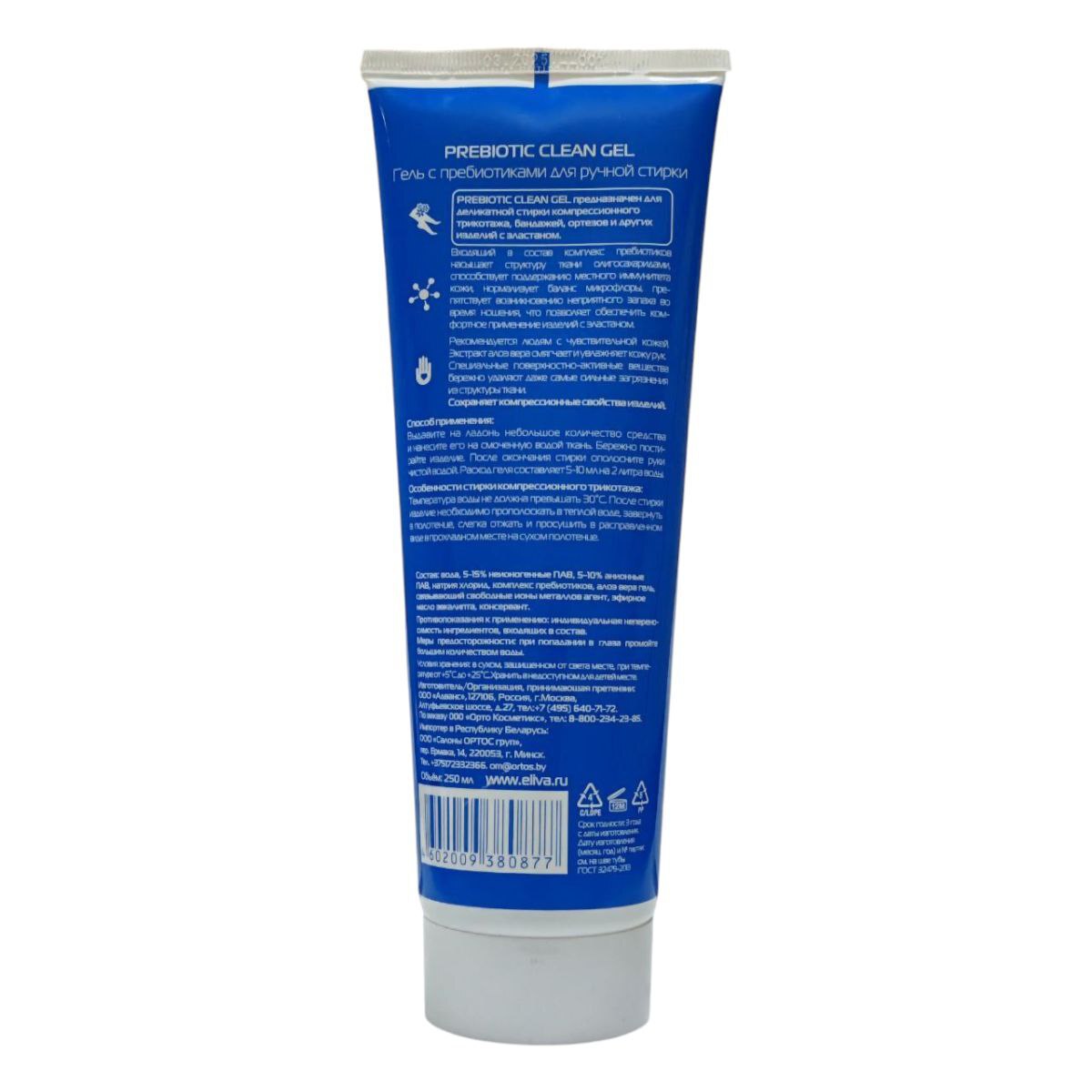 Гель ELIVA в увеличенном объеме 250 мл предназначен для ручной стирки деликатных тканей и изделий, содержит пребиотики, поддерживающие здоровую микрофлору кожи рук. Обладает мягким очищающим действием, не повреждает кожу и эффективно удаляет загрязнения. Конструктивно поставляется в удобной пластиковой бутылке с дозатором для экономичного расхода. Медицинские показания включают профилактику сухости и раздражений кожи при частой стирке.