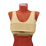 Медицинский бюстгальтер после мастэктомии из высококачественного эластичного трикотажного полотна с хлопковым дубляжом, обеспечивающего оптимальную воздухопроницаемость и гипоаллергенность. Втачные карманы допускают надежное размещение экзопротезов молочной железы. Модель оснащена регулируемыми бретелями и застёжкой на спине с несколькими крючками для удобства и стабильной поддержки в послеоперационный период.