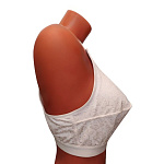 Медицинский бюстгальтер после мастэктомии из эластичного, гипоаллергенного трикотажного полотна с кружевной отделкой. Оснащен втачными карманами для экзопротезов, широкими регулируемыми бретелями на хлопковом дубляже. Модель предусматривает удобную застежку на спине. Изделие снижает нагрузку на послеоперационные швы и обеспечивает комфорт при длительном использовании.