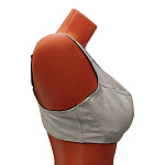 Медицинский бюстгальтер после мастэктомии из эластичного гипоаллергенного трикотажа, оснащённый втачными карманами для размещения экзопротезов молочной железы. Обладает широкими регулируемыми бретелями с хлопковым дубляжом и застёжкой на спине на несколько крючков для надежной фиксации. Предназначен для комфортного длительного ношения и защиты чувствительной кожи после оперативного вмешательства.