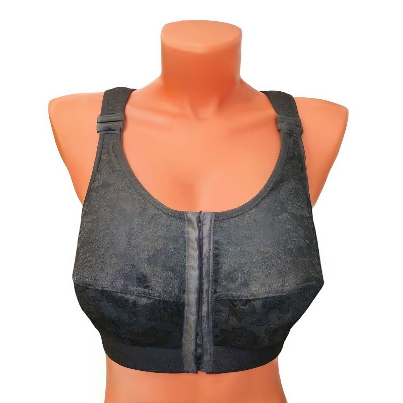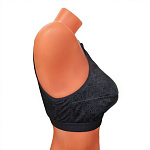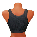 Медицинский бюстгальтер с мягкой трехдетальной чашкой, оснащенный двухуровневой фронтальной застежкой на 8-10 плоских крючков в зависимости от размера. Широкие регулируемые бретели на хлопковом дубляже минимизируют риск раздражения чувствительной кожи. Изготовлен из эластичного трикотажного материала, обеспечивает надежную фиксацию протеза молочной железы после мастэктомии, удобен для длительного ношения.