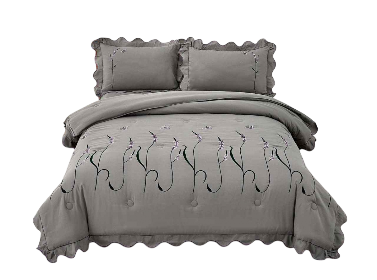 КПБ EFOR COTTONI с вышивкой "стебель",серый евро