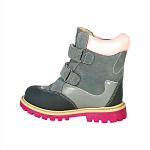 Детская ортопедическая обувь типа сапожек из натуральной кожи с текстильной внутренней отделкой. Сапожки разработаны для детей с легкими ортопедическими нарушениями, такими как начальная стадия плоскостопия и слабость мышц стопы. Обладают жестким задником дляфиксированной пятки, анатомической стелькой, поддерживающей свод стопы, и амортизирующей подошвой, снижающей ударную нагрузку. Фиксация осуществляется с помощью молнии или застежек-липучек, что облегчает надевание и обеспечивает надежную посадку. Повышают устойчивость при ходьбе и способствуют правильному развитию стопы.