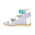 Детские ортопедические сандали, выполненные из натуральной кожи и мягкой ткани, обеспечивающей комфорт и вентиляцию стопы. Предназначены для профилактики и лечения легких деформаций стопы, таких как плоскостопие и мышечная слабость. Конструкция включает жесткий задник для надёжной фиксации пятки, анатомическую стельку, поддерживающую свод стопы, и амортизирующую подошву с противоскользящими свойствами. Фиксация осуществляется регулируемыми ремешками-липучками. Рекомендуются для повседневного летнего ношения.