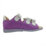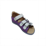 Ортопедические сандалеты из натуральной кожи с гипоаллергенной внутренней текстильной подкладкой, разработанные для профилактики и коррекции плоскостопия у детей. Конструкция предусматривает жесткий задник для надежной фиксации пятки, анатомическую стельку для поддержки свода, амортизирующую подошву с противоскользящими свойствами и регулируемые застежки-липучки для точной подгонки по ноге. Обувь обеспечивает комфорт и стабилизацию стопы при активном движении ребенка, рекомендована для летнего ношения.