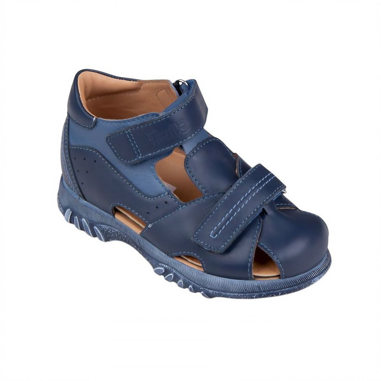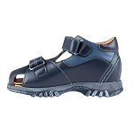 Детские ортопедические туфли из натуральной кожи с гипоаллергенной внутренней подкладкой, предназначенные для профилактики и коррекции плоскостопия и нестабильности голеностопного сустава. Конструкция включает жесткий задник, анатомическую стельку с поддержкой свода, амортизирующую подошву с противоскользящим покрытием и регулируемые застежки для точной посадки и комфортного ношения. Обувь подходит для повседневного использования и активных занятий.