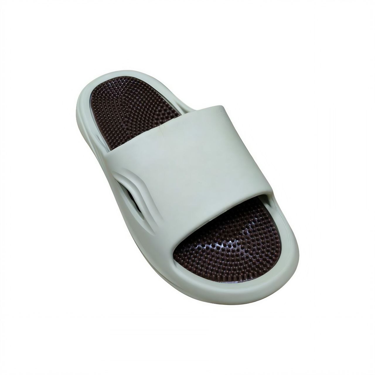 Массажный эффект: Специально разработанная подошва с выступами стимулирует активные точки стопы, способствуя улучшению циркуляции крови и расслаблению мышц.