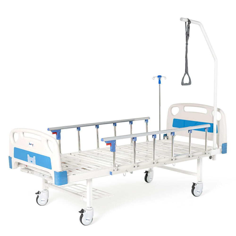Изготовлена из прочного металла с порошковым покрытием, оснащена механическим приводом для регулировки положения спинки и подножья. Предназначена для использования в больницах и домашних условиях, облегчая уход за пациентами с ограниченной подвижностью. Конструкция обеспечивает удобство при смене положения пациента, способствует профилактике пролежней и облегчает выполнение медицинских процедур.