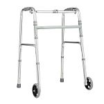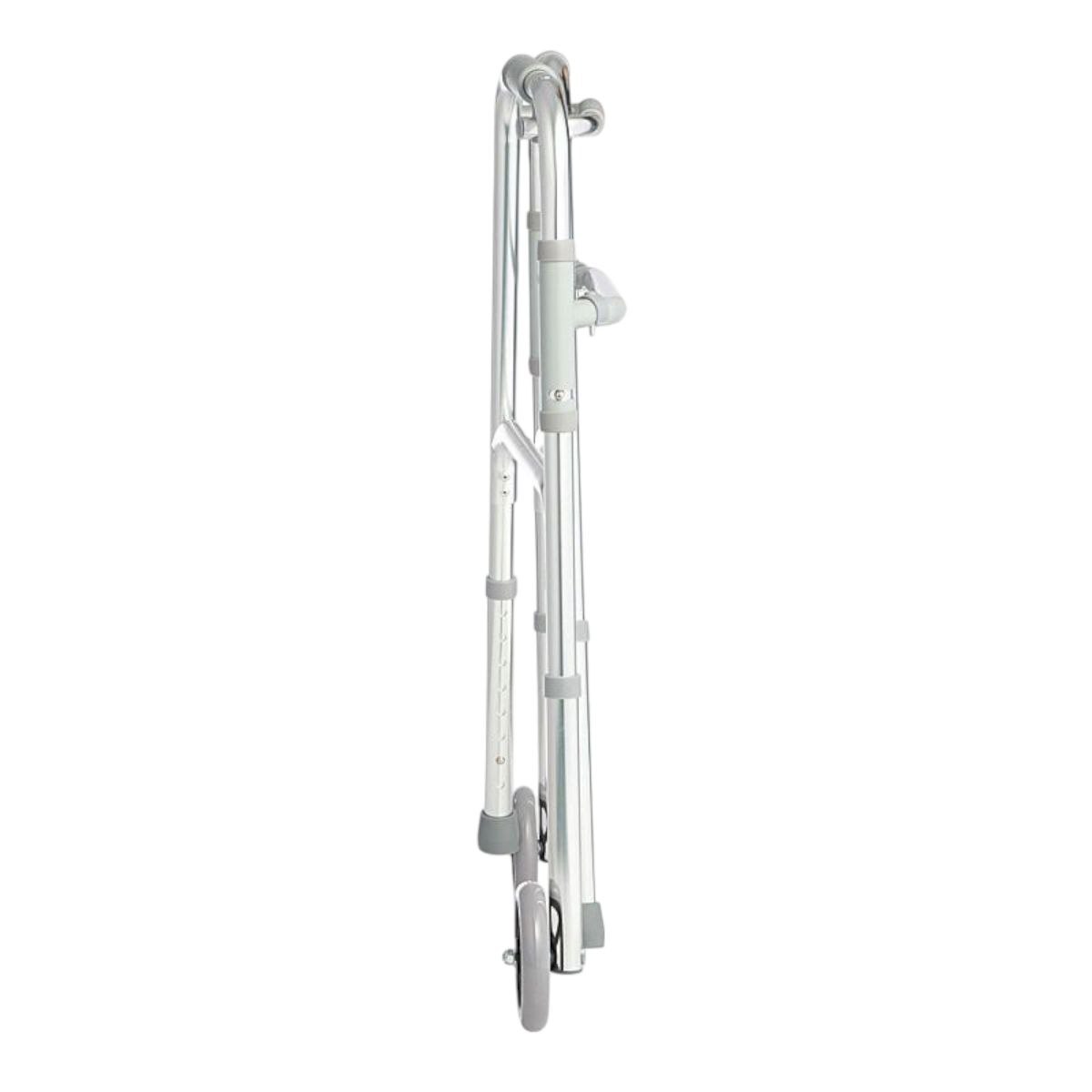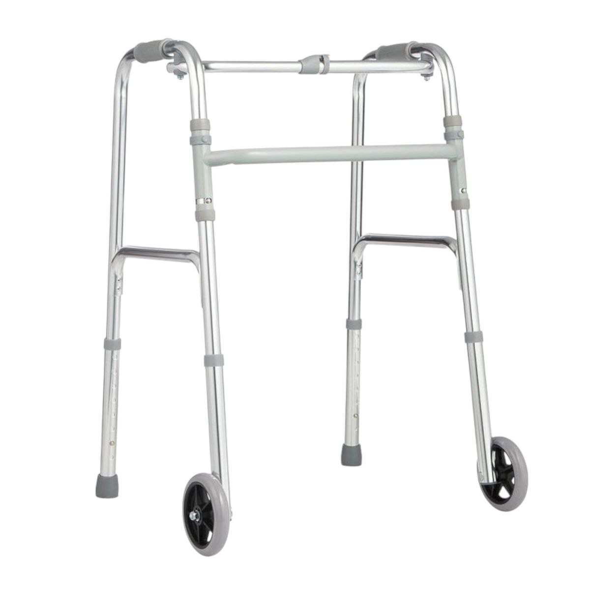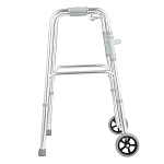 Изготовлены из облегчённого алюминиевого сплава с регулируемой высотой, оснащены двумя роликами и нескользящими накладками на задних опорах. Предназначены для поддержки пациентов с ограниченной подвижностью, обеспечивают устойчивость и облегчают перемещение как в домашних условиях, так и в медицинских учреждениях. Конструкция складная, что облегчает транспортировку и хранение.