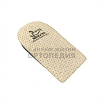 <p version="2">Средней высоты подпяточник, компенсирующий укорочение конечности до 15 мм. Материал — латекс или ЭВА с нескользящей текстильной поверхностью. Назначается при функциональном укорочении ноги, тазовом перекосе, необходимости коррекции биомеханики ходьбы. Используется в ортопедической или повседневной обуви. Может комбинироваться с другими корректирующими элементами.</p>