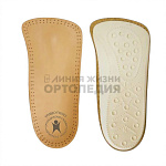 <p version="2">Полустельки с комбинированной коррекцией: продольный свод, метатарзальная подушка, пятка с амортизирующим эффектом. Изготавливаются из кожи, латекса и термопластичных элементов. Обеспечивают коррекцию и комфорт при различных видах плоскостопия. Назначаются при утомляемости, плоско-вальгусной установке стоп, болях в коленях и спине. Имеют прочную форму, сохраняющую устойчивость при носке.</p>