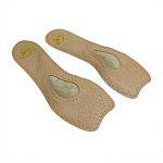 Компактные ортопедические полустельки с супинатором продольного свода. Спроектированы с учетом ношения в модельной, узкой обуви. Изготовлены из кожи с латексной подложкой. Обеспечивают амортизацию, снижают усталость и нагрузку на позвоночник. Применяются при продольном и комбинированном плоскостопии, а также в профилактических целях. Не создают дополнительного объема в передней части обуви.
